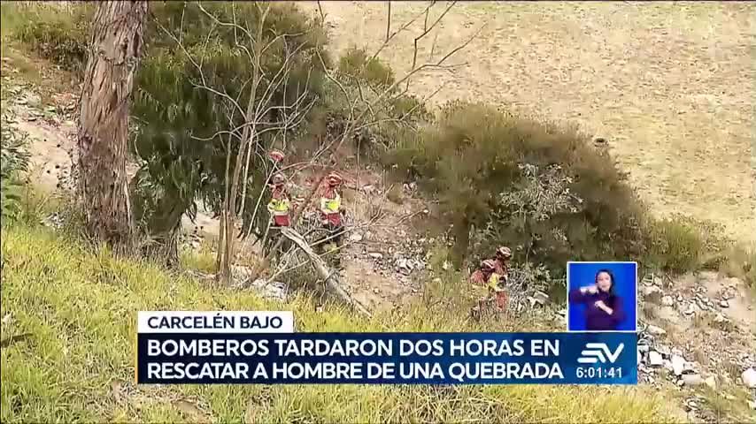El operativo donde hombre escapó de secuestro requirió una intervención especializada del Cuerpo de Bomberos de Quito. Los rescatistas descendieron aproximadamente 60 metros por la quebrada. Utilizaron cuerdas y equipos de aseguramiento para llegar hasta la víctima.